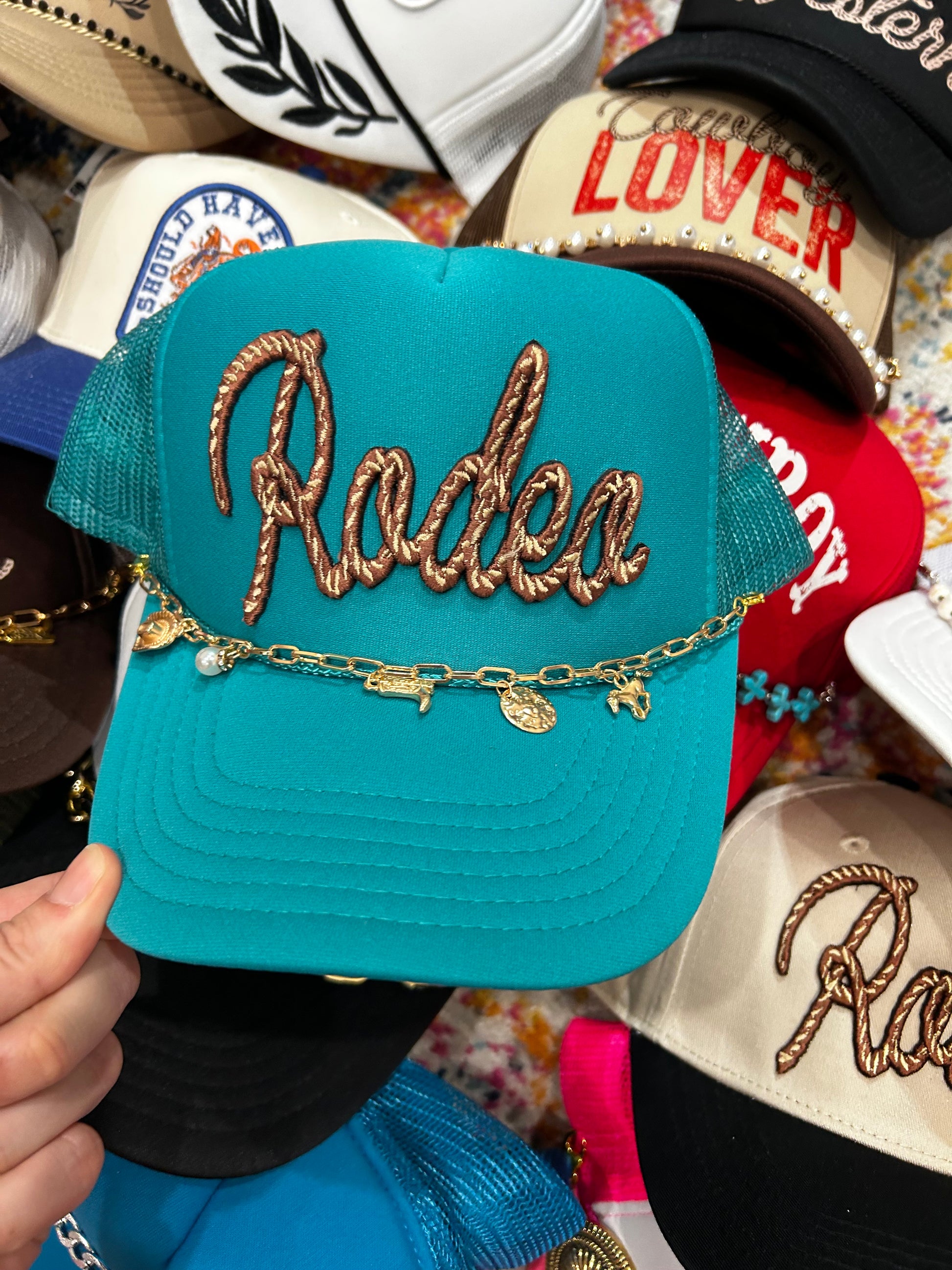 Don't forget to pair with one of our trucker hat chains! Let's go rodeo!